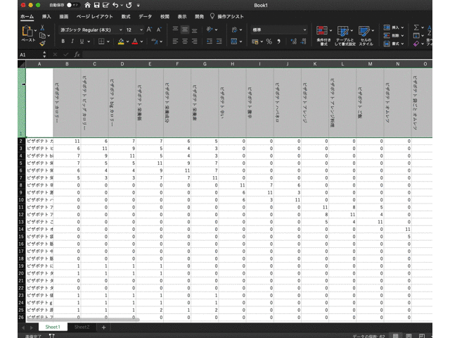 1行目を縦書きにする