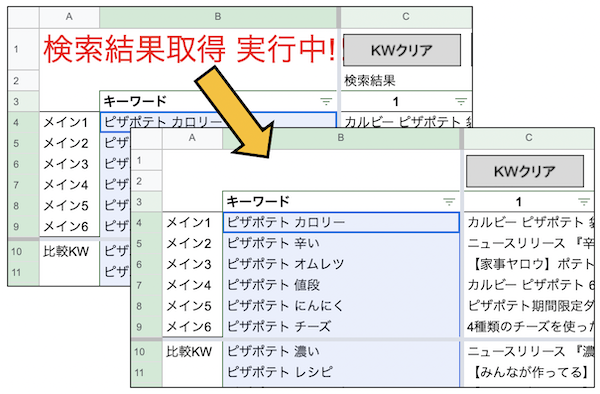 注意:サジェスト数によっては何百行・何百列の表が作成されます。